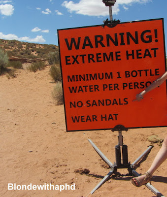 Sair do Utah e entrar no Arizona vem com um aviso: calor! Quero muito ir (e vou) a um sítio especial daqueles da National Geographic. Muito bem, quem lá quiser ir que se prepare. O primeiro aviso é um aviso de calor extremo (sim, já o tinha sentido...).