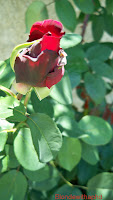 Seja como for, nesta altura há rosas no jardim, e um trevo perdido no meio da relva, selvagem, dissonante de um jardim amansado. As rosas alegram-me. Não as cuido e não sei falar com elas. Mas elas sentem o importantes que são e não me morrem. Lembram-me a Canção de Salomão não sendo lírios e lembram-me uma mulher loura com um vestido de Verão às riscas azuis que cuidava tão bem delas...